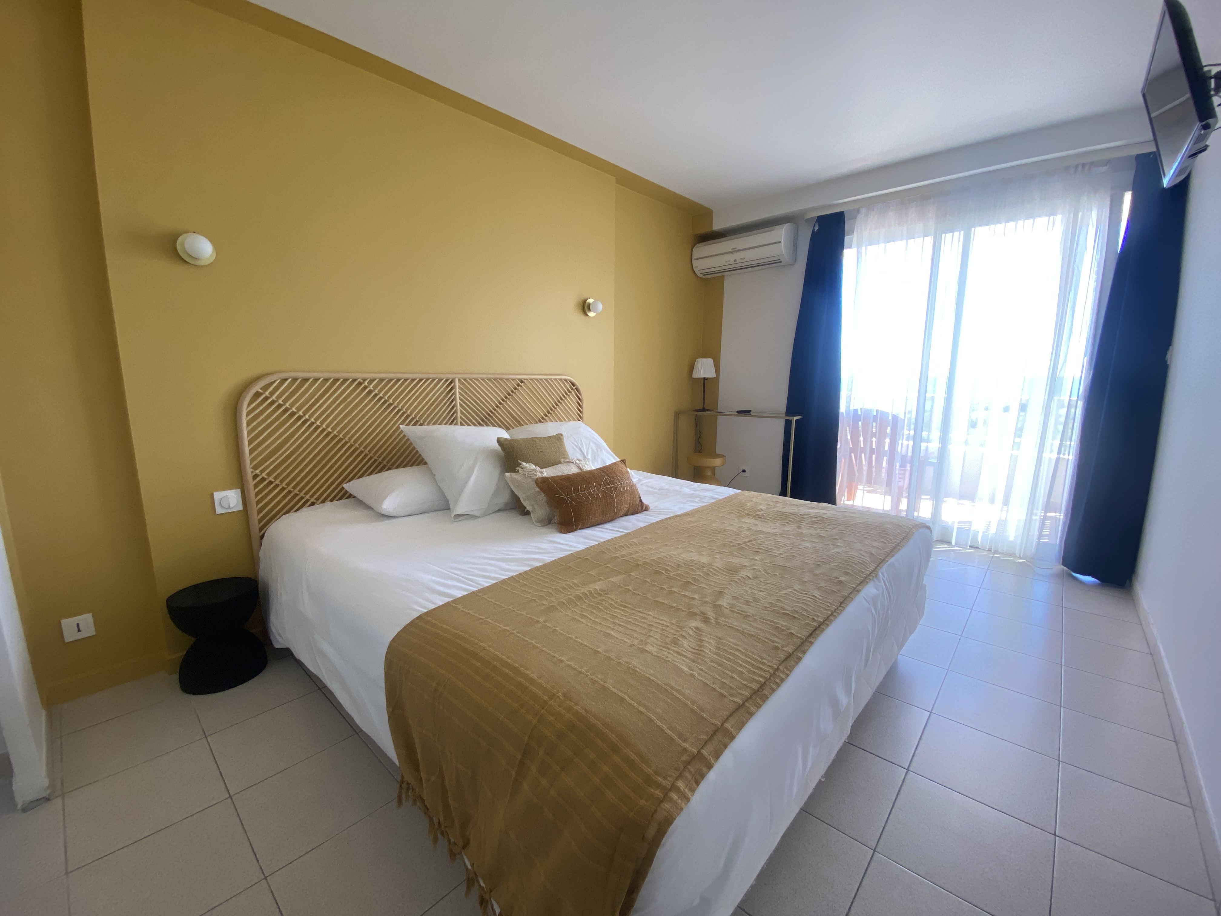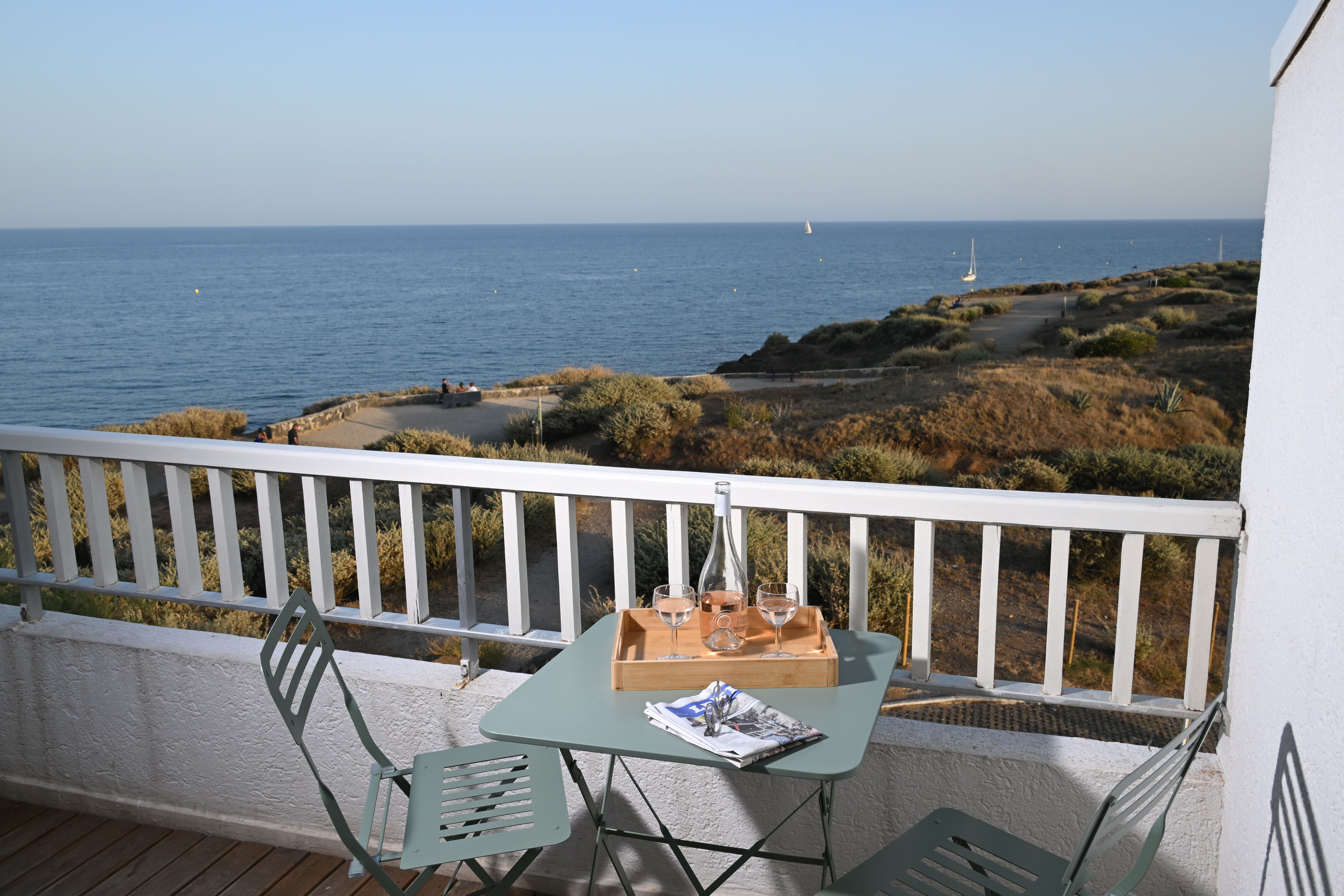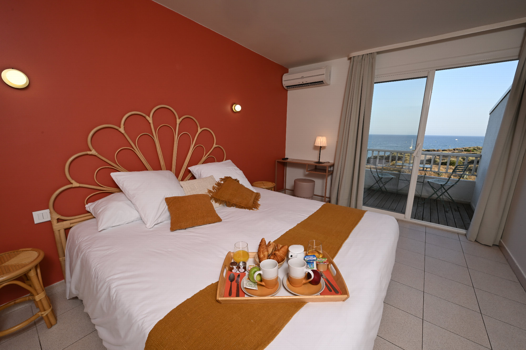 L'ambiance familiale, hôtel face à la mer, la proximité des plages et du centre, chambre avec terrasse
