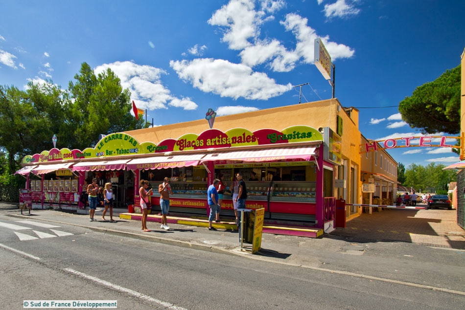 Un bus peut stationner sur les parkings près de l'hôtel et à proximité du camping Mas de la plage, avenue de la Méditerranée à Vias-plage.