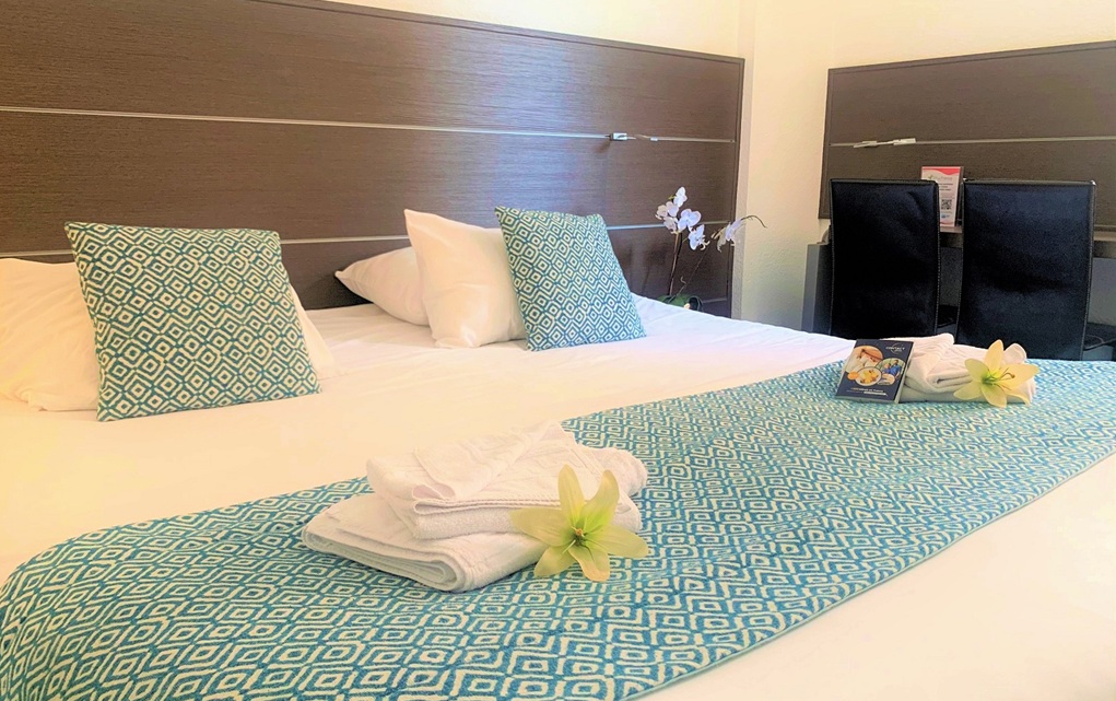 The rooms are comfortable, air-conditioned and equipped with a modern bathroom, free WiFi and satellite TV with Canal+.