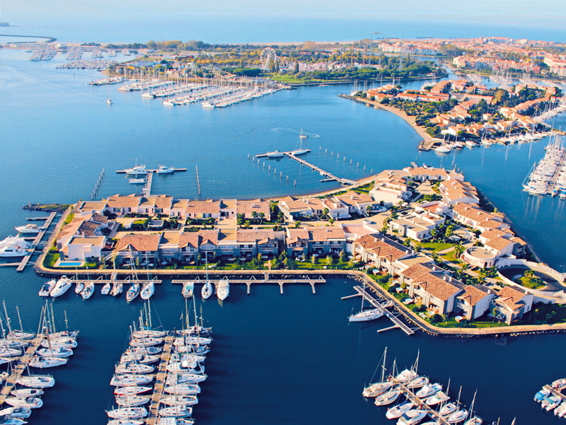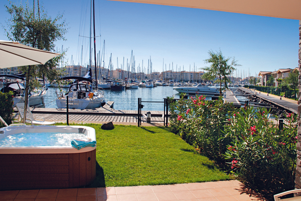 Sur une île privée et piétonnière au cœur du port de plaisance, à 1 km des plages et 100 m des commerces.